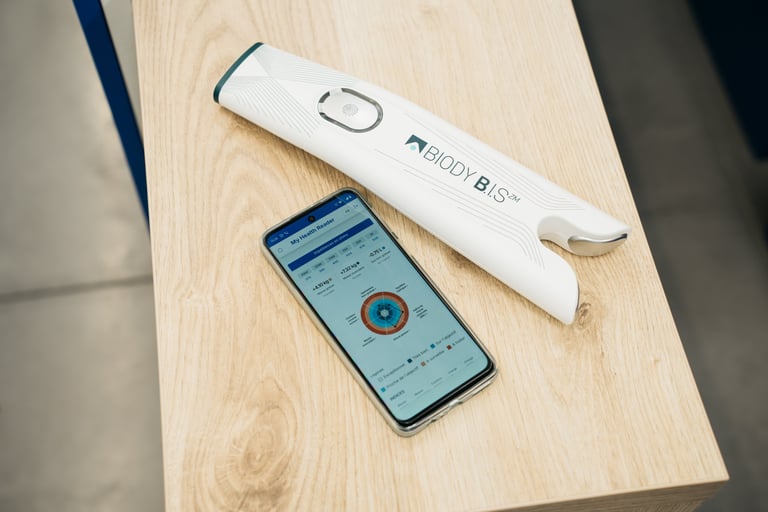 Pour chaque RDV en présentiel, l'analyse de votre composition corporelle pourra vous être proposée avec l'équipement eBiody